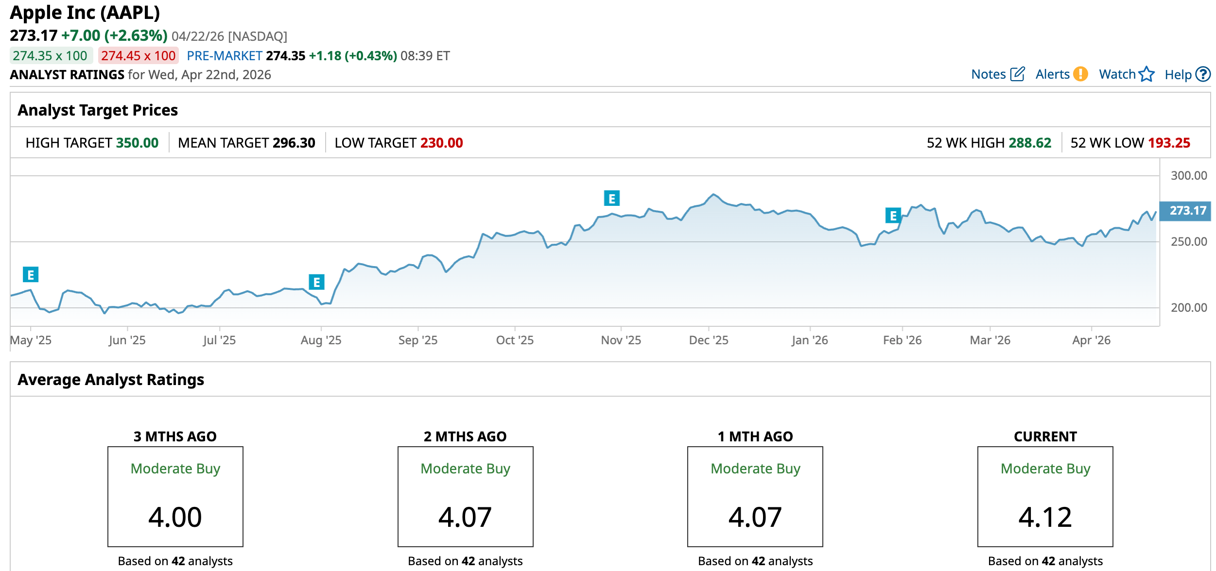 The mean price target of $296.30 represents potential upside of 8.47% from current levels. Further, the most bullish price target of $350 suggests that AAPL stock could climb 28.13% from here.