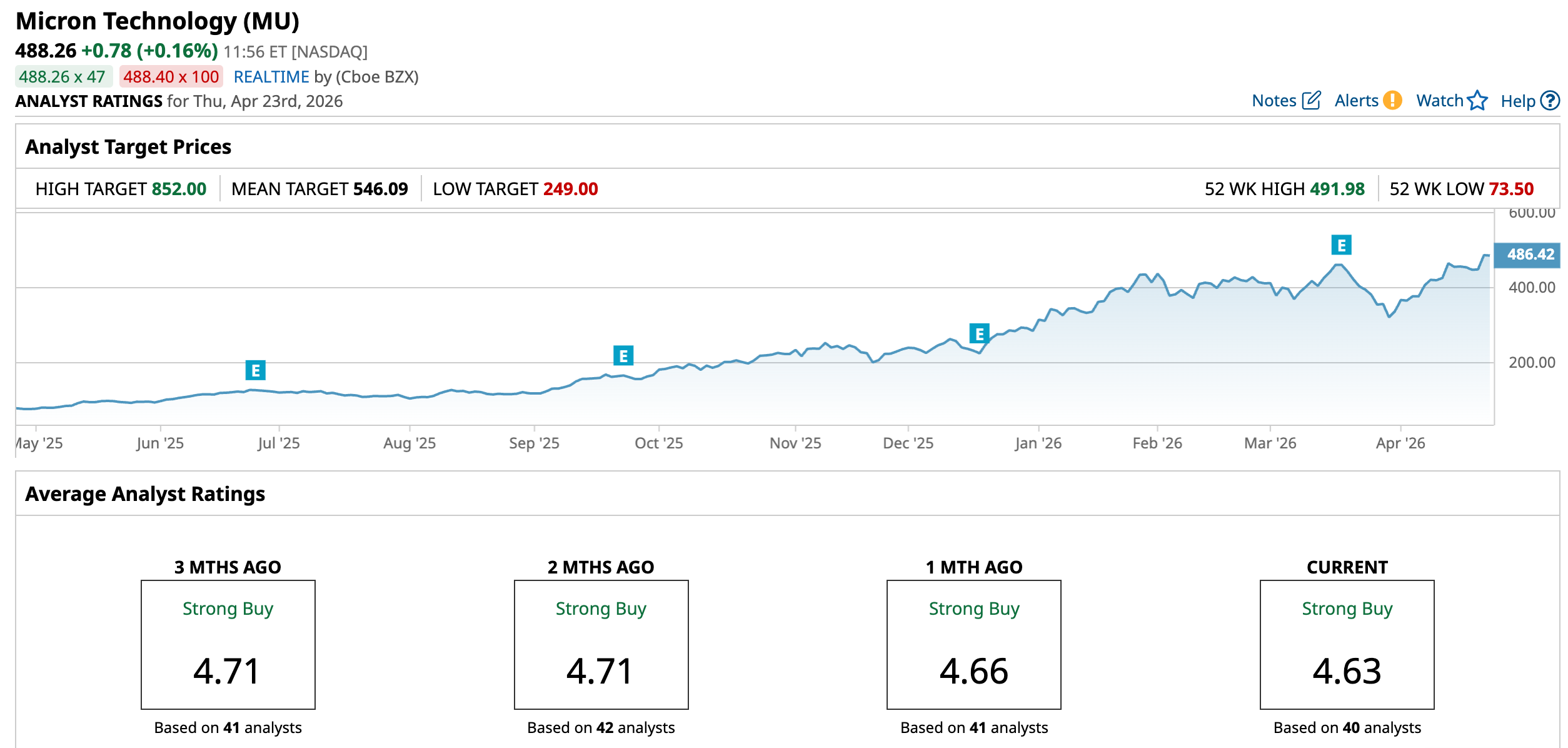 On Wednesday, April 22, MU stock reclaimed its swagger, hitting a fresh 52-week high of $491.98 while jumping 8.5% intraday. Markets cheered relentless demand for high-bandwidth memory (HBM) chips and latched onto hopes of easing Middle East tensions, injecting both fundamental strength and macro optimism into the rally.