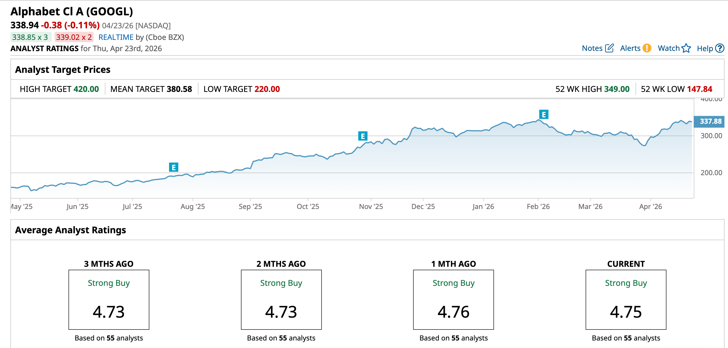 Wells Fargo’s Ken Gawrelski is leaning into that story. He raised his price target to $397 and kept an “Overweight” rating, pointing mainly to Google Cloud, where he expects a strong lift helped by a TPU licensing deal with Broadcom (AVGO) and the acquisition of Wiz.
