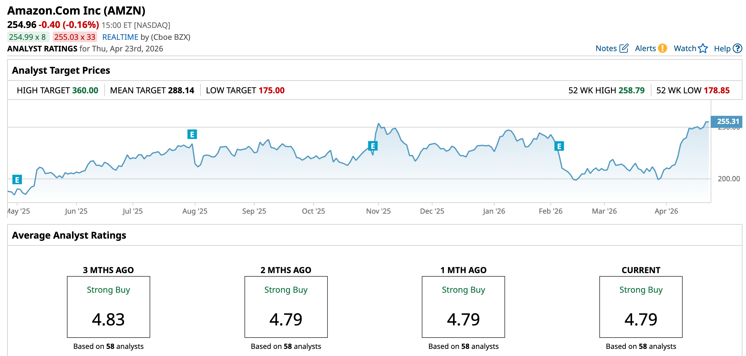 Amazon is scheduled to release its Q1 fiscal year 2026 financial results on Wednesday, April 29, after the closing bell, setting the stage for another closely watched checkpoint. Management expects net sales to land between $173.5 billion and $178.5 billion, translating into a solid 11% to 15% YOY growth against Q1 2025.