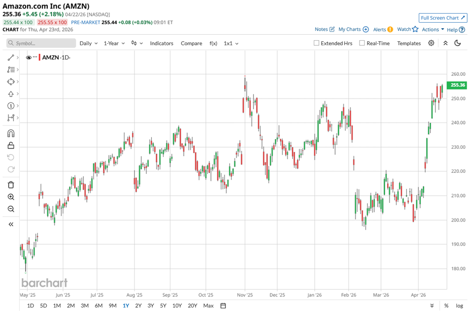 The stock’s performance reflects the operational breadth. Over the past 52 weeks, Amazon shares have surged 41.23%, followed by an additional 10.51% gain year-to-date (YTD). Momentum has intensified recently, with the stock advancing 21.38% in just the past month.