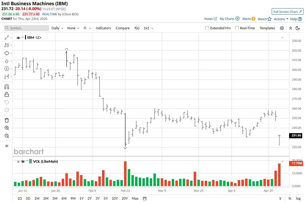 IBM stock has been a disappointment for investors amid AI disruption concerns in 2026, currently down some 24% versus its year-to-date high.