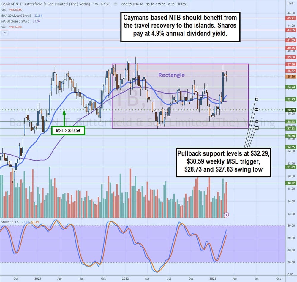 This Bermuda-based offshore regional bank pays a 4.90% annual dividend yield. Fee-based income comprises 35% of its revenues, and securities are around 40% of its earning assets. Its loans have a heavy concentration of floating-rate debt. The bank has limited net interest income, mainly being a mortgage lender for the islands, including Bermuda, Cayman, and Channel Islands. They are also acquiring certain trust assets from Credit Suisse (NYSE: CS) in Guernsey, the Bahamas, and a branch in Singapore. Revenues rose 17% YoY, and NIM grew to $94.6 million Q4 2022, up from $74.5 million in the year-ago period. The banks gave the Cayman government a 15-year $150 million loan at 3.25% in Q4 2022. The efficiency ratio fell under 60%. The bank is exceptionally conservative with its investments. The Board authorized a share buyback program of up to 3 million shares. Removing pandemic-related travel restrictions and boosting experiential travel should also boost tourism and stimulate the local economies in its regions.