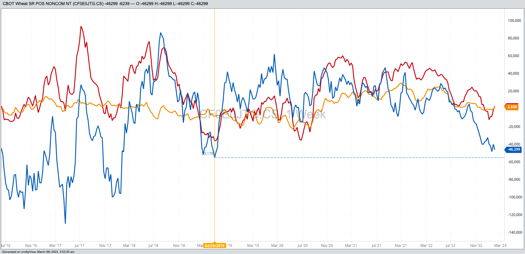 - The investment community has been bearish Chicago (SRW) wheat for almost a year, indicated by the large noncommercial net-short futures position reported by the CFTC.Â
