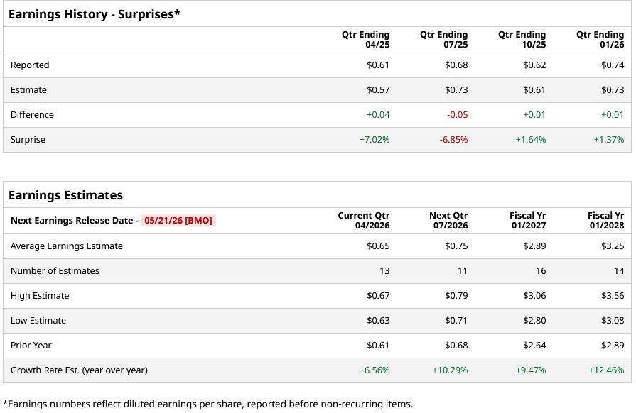 For fiscal 2027, analysts project the company’s EPS to be $2.89, up 9.5% from $2.64 in fiscal 2026. Moreover, its EPS is expected to rise by roughly 12.5% year over year (YoY) to $3.25 in fiscal 2028.