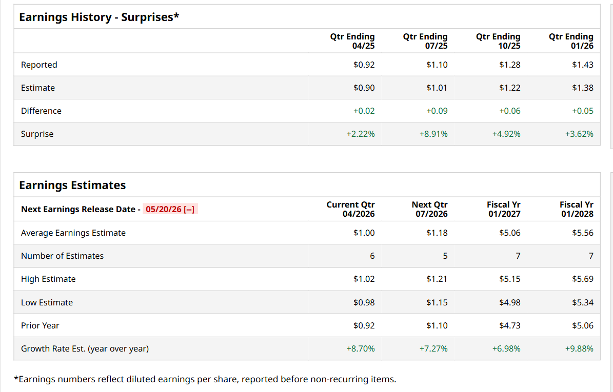 Valued at a market cap of $175.4 billion, The TJX Companies, Inc. (TJX) is an off-price apparel and home fashion retailer that operates an extensive network of stores. The Framingham, Massachusetts-based company is scheduled to announce its fiscal Q1 earnings for 2027 in the near future.