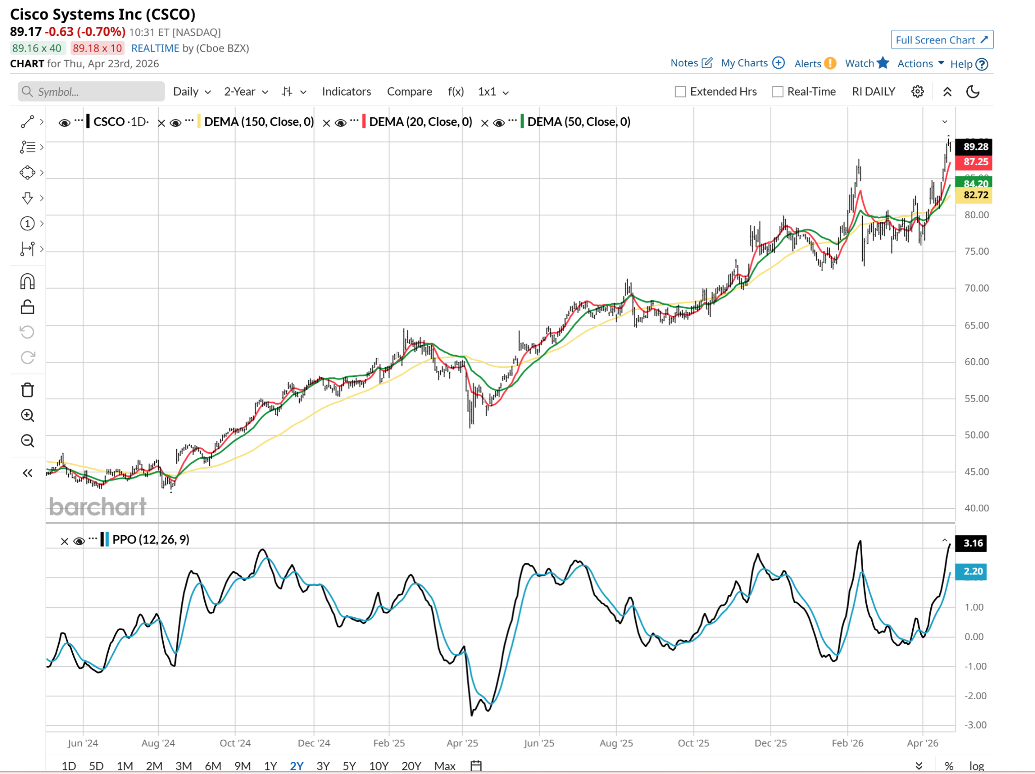 That’s why CSCO looks like this. That’s a powerful move that has it stretched, but still very much in bull mode for now.
