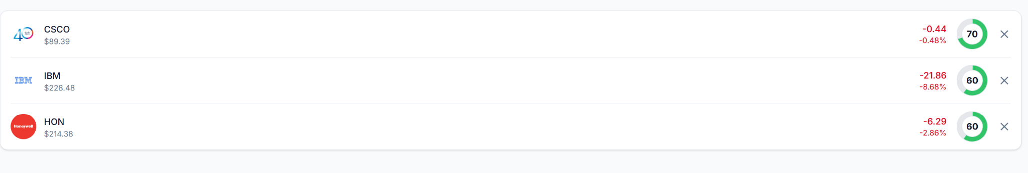 Buying CSCO at $79 back 60 days ago produced a higher return than buying it at $83 just 10 days ago. But the latter entry point was a lower-risk one. A ROAR Score of 30 does not mean “no chance.” It means “higher risk.” IBM and HON had middle of the road risk.