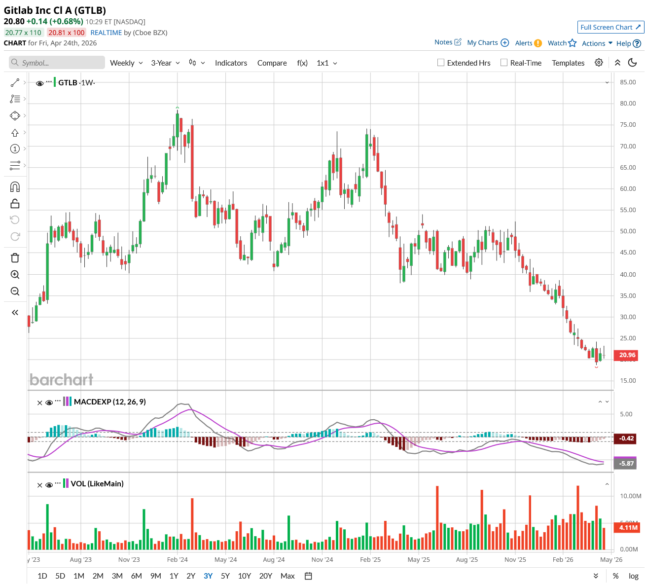 Alternatively, growth in bookings has been soft, and the company is investing heavily in AI. It estimates margins to compress about 400 basis points in fiscal year 2027. GitLab CEO Bill Staples framed it plainly at the Morgan Stanley conference: AI coding tools are generating more code, and that code still has to be reviewed, secured, and deployed.