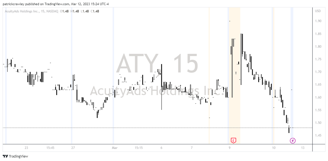 Toronto-based ad-tech firm AcuityAds (NASDAQ: ATY) is one of SVB’s biggest victims so far. The company revealed in a press release that it holds $55 million in cash in bank accounts held at Silicon Valley Bank. They only have $4.8 million in cash outside the bank at the moment.