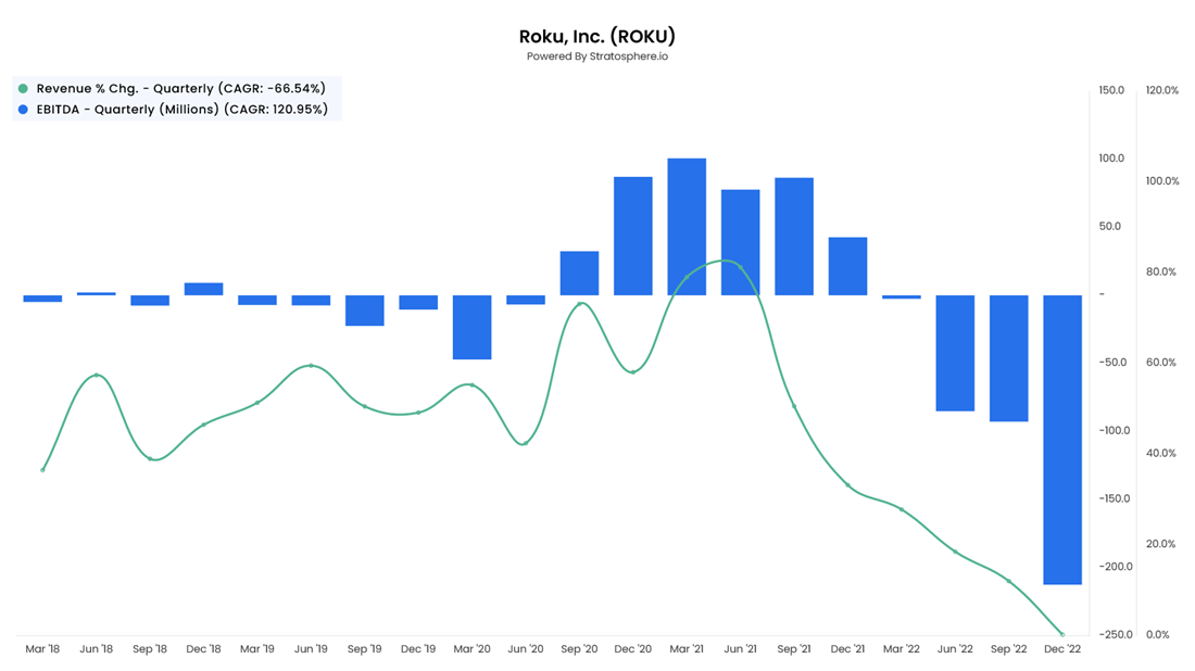 The company still has roughly $1.4 billion in cash across different banks, so it's definitely not doomsday. However, moments like these can serve as an opportunity for the market to re-price a stock like Roku, an unprofitable company with an arguably undifferentiated product offering carrying the valuation of an innovative growth stock.