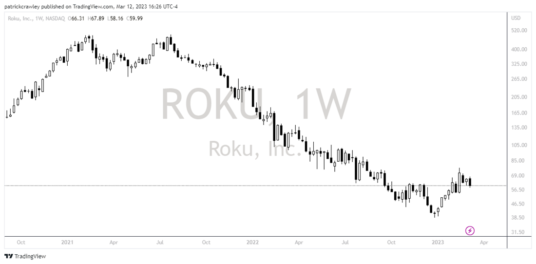 Following the stock's strong start to 2023, up about 45% year-to-date, will the SVB panic send it back into its longer-term downtrend pattern?