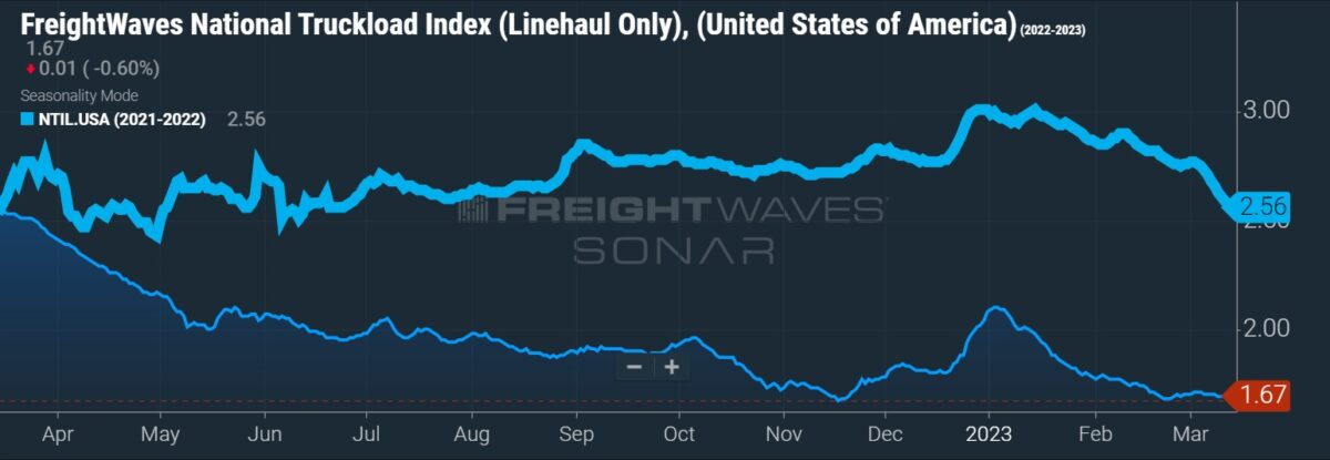 El comentario de Old Dominion era contrario a las cifras reales comunicadas por algunos transportadores LTL en enero y febrero, que mostraban una aceleración del descenso interanual del tonelaje. Sin embargo, las cifras se referían a febrero de 2022, que marcó el final del pico del ciclo.