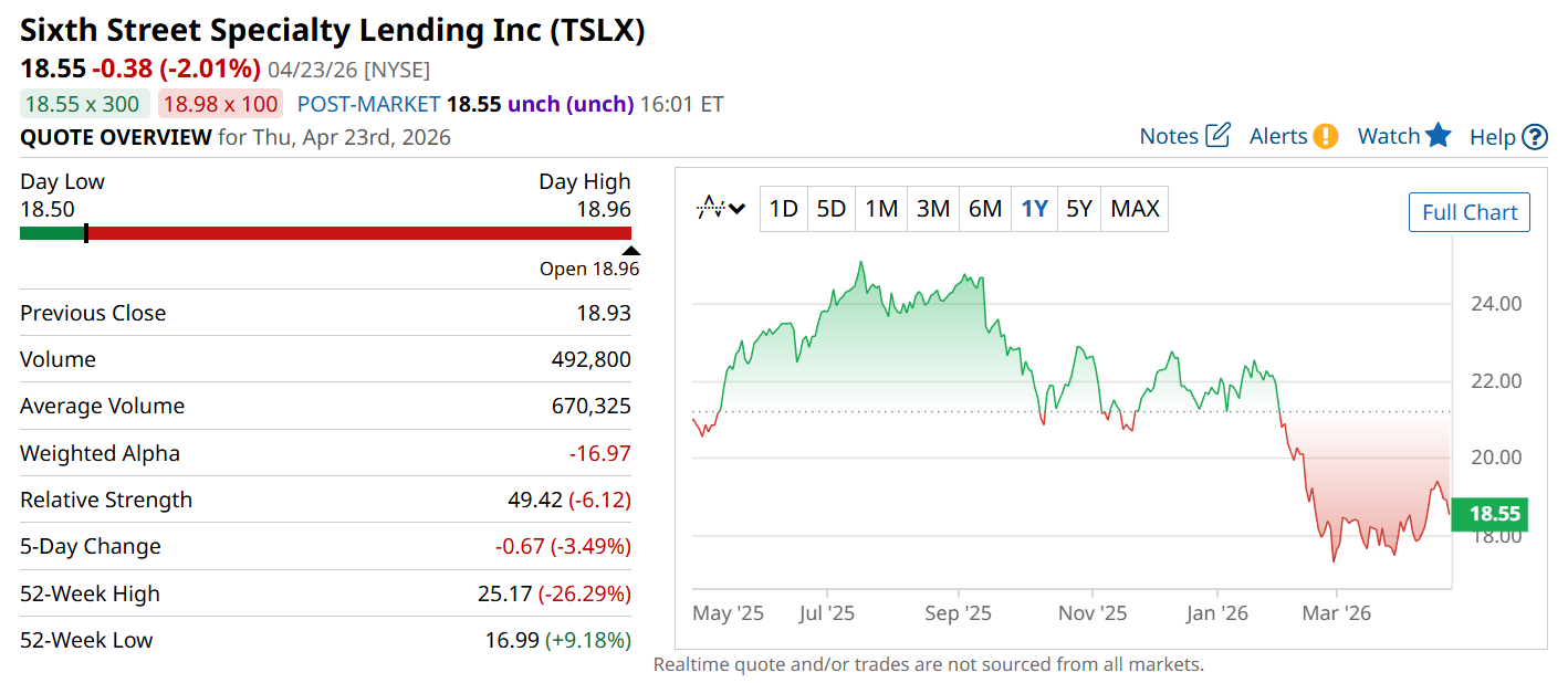 The next dividend stock on my list is Sixth Street Specialty Lending Inc., another business development company that lends to middle-market businesses. It gives investors access to private credit through a portfolio focused mainly on directly originated loans and other income-producing investments. Sixth Street focuses on emerging players in high-growth sectors like healthcare, energy, tech, and more.