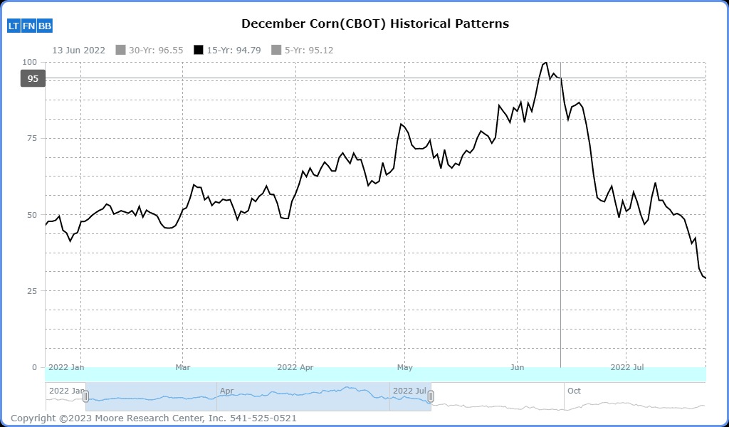 Grain market seasonal patterns are relatively consistent. Traders should never blindly buy or sell based solely on a seasonal pattern. But, when a trader can add confirmation that the seasonal pattern may work, an edge has been created for a trade. As traders know, we can still have losing trades even with an advantage. Proceed with caution for all of your speculative decisions.Â