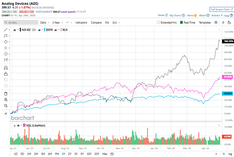 Over the past year, ADI stock has returned 104.7%, notably outperforming both the S&P 500 Index’s ($SPX) 30.6% gains and the State Street Technology Select Sector SPDR Fund’s (XLK) 56% gains over the same time frame.