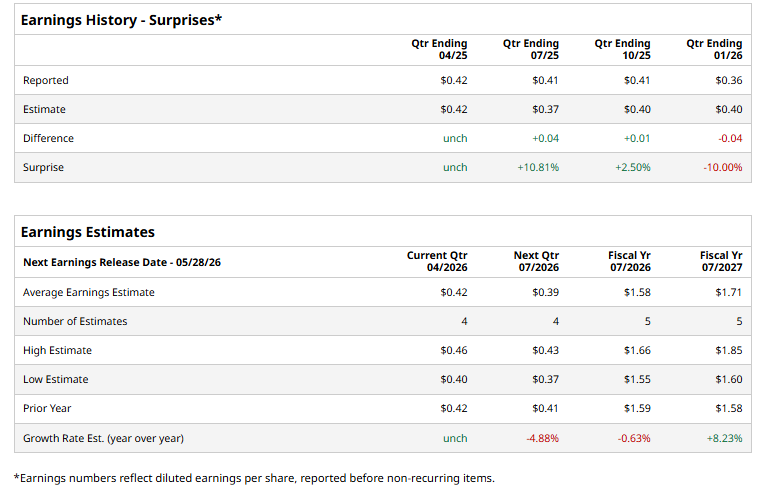 It is expected to announce its fiscal Q3 earnings for 2026 in the near future. Before this event, analysts expect this online car auction company to report a profit of $0.42 per share, flat from the year-ago quarter. The company has met or surpassed Wall Street’s bottom-line estimates in three of the last four quarters, while missing on another occasion.