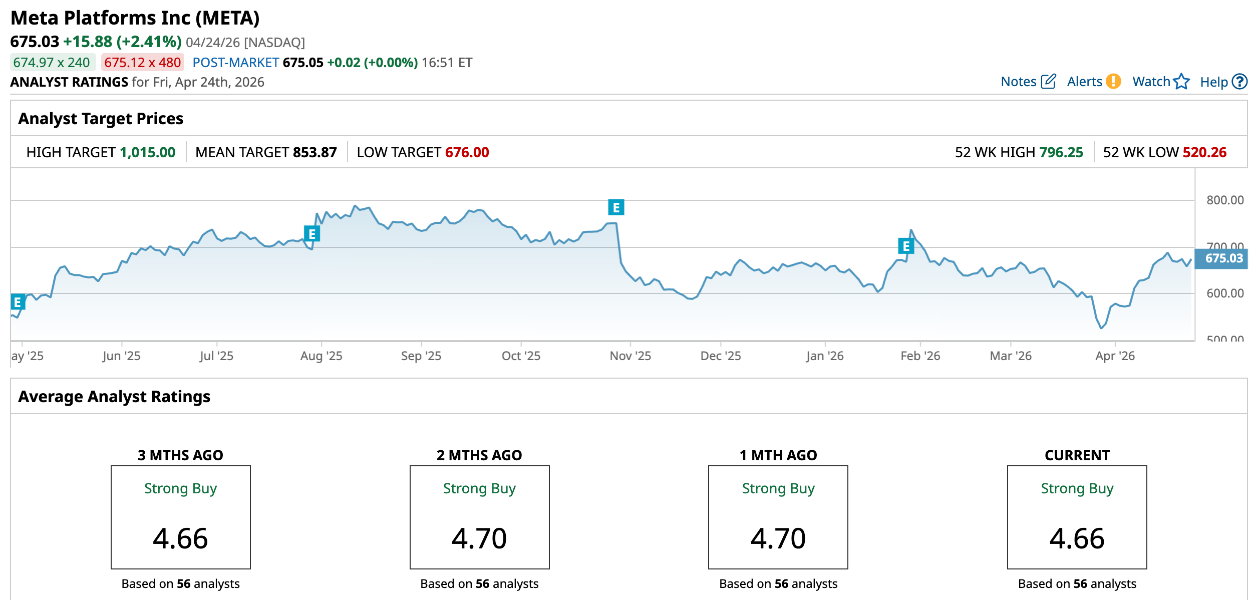 On the income front, Meta pays an annual dividend of $2.10 per share, yielding 0.32%. Its most recent quarterly dividend of $0.53 per share was paid on March 26 to shareholders of record as of March 16.