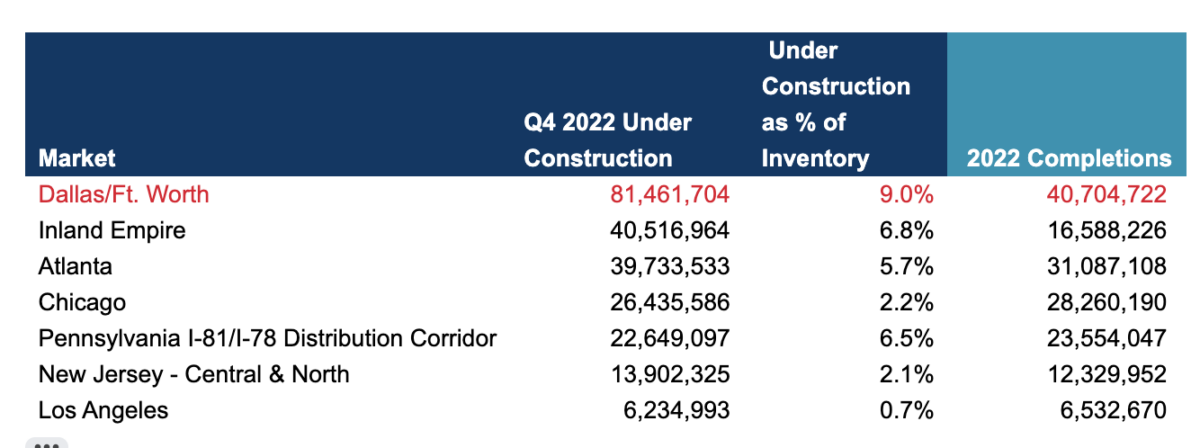 FREIGHTWAVES: Most markets have seen a drop in construction starts in the past two quarters. Has DFW been immune?