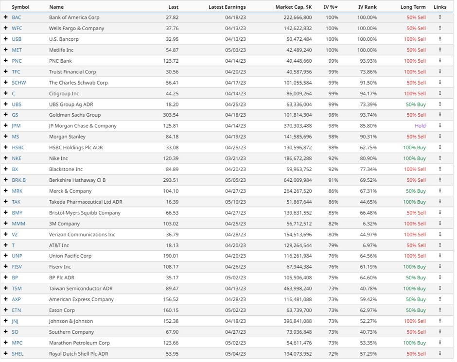 We can use Barchart’s Stock Screener to find other stocks with high implied volatility.