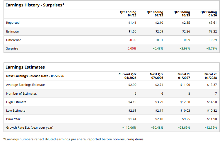 The tech star is set to release its fiscal Q1 2027 results soon. Ahead of this event, analysts forecast DELL to post an EPS of $2.99, a growth of nearly 112.1% from $1.41 in the year-ago quarter. It has exceeded Wall Street's earnings expectations in three of the past four quarters while missing on another occasion.