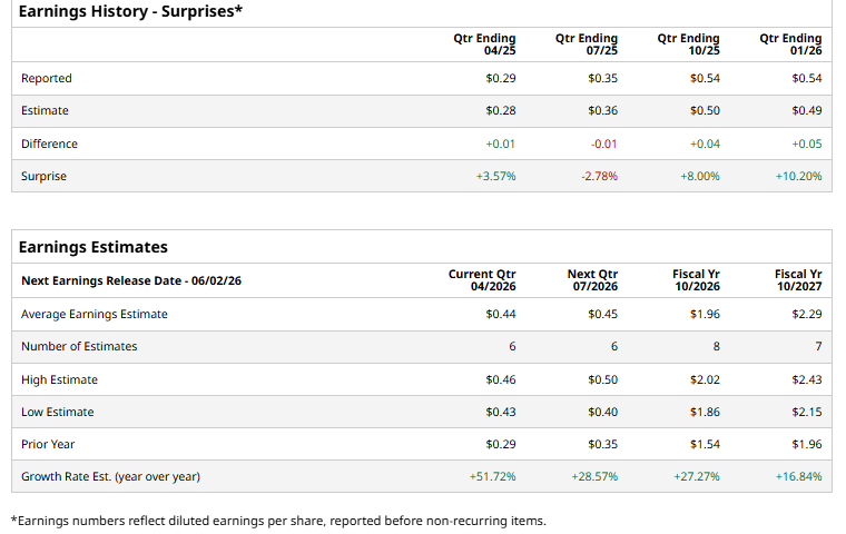 For fiscal 2026, analysts project the company’s EPS to be $1.96, up 27.3% from $1.54 in fiscal 2025. Moreover, its EPS is expected to rise 16.8% year over year to $2.29 in fiscal 2027.