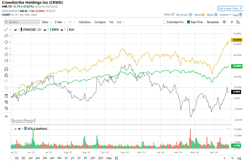 CRWD stock has surged 8.2% over the past 52 weeks, underperforming the S&P 500 Index’s ($SPX) 30.6% uptick and the Technology Select Sector SPDR Fund’s (XLK) 56% surge during the same time frame.