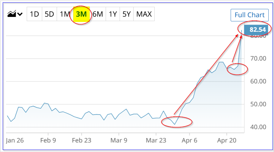 INTC closed at $82.54, up +23.60% after its Q1 earnings results the night before on April 23. Its price target could exceed $100 per share, as this article will show.