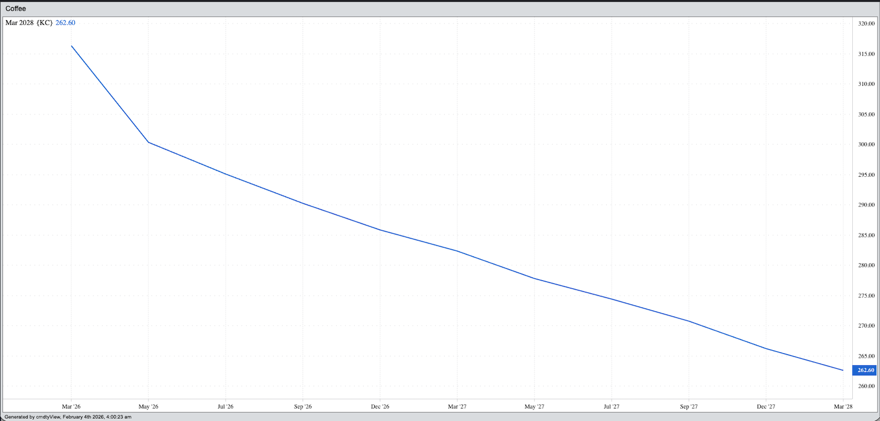 Tuesday afternoon, a friend from central Nebraska called with a market question, but rather than corn, soybeans, cattle, and so on, he asked about coffee. Tuesday's close saw the market sharply in the red (per pound):
