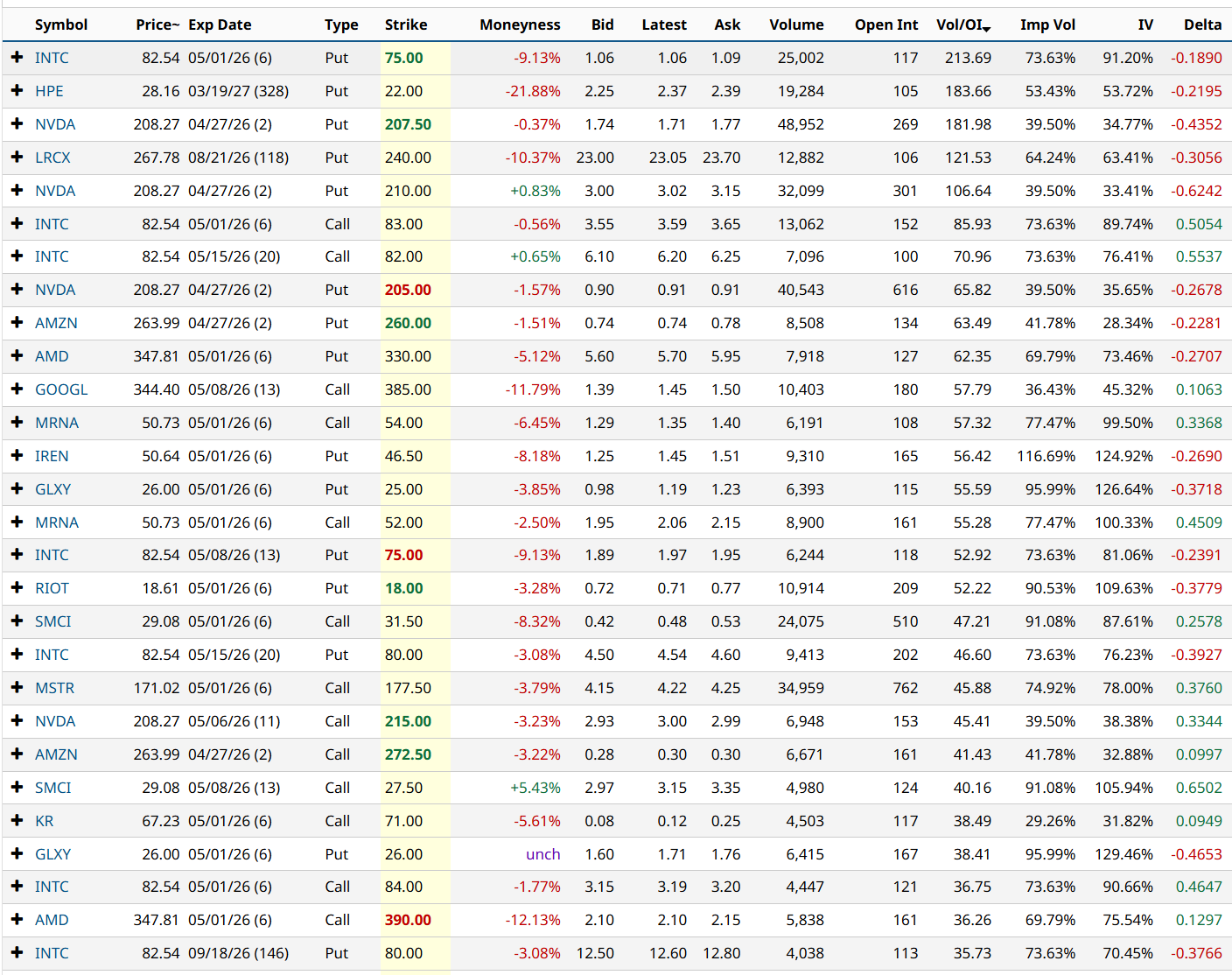 INTC, NVDA, LRCX, AMZN, AMD and GOOGL all experienced unusual options activity last week.