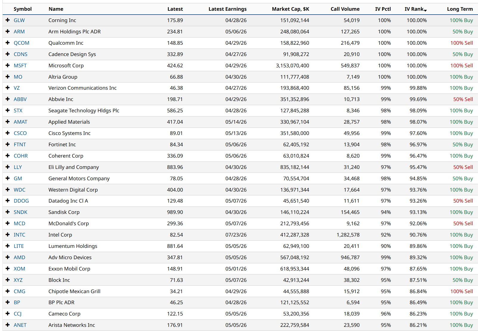 We can use Barchart’s Stock Screener to find other stocks with high implied volatility.