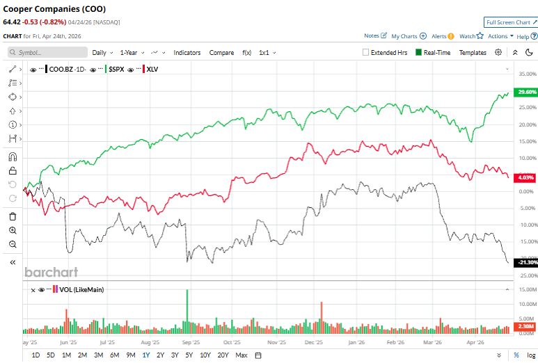 COO has declined 22% over the past 52 weeks, notably underperforming both the S&P 500 Index's ($SPX) 30.6% return and the State Street Health Care Select Sector SPDR ETF’s (XLV) 4.9% uptick over the same time period.