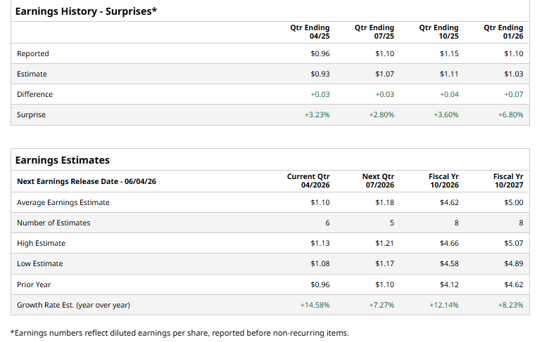 Ahead of this event, analysts expect this healthcare company to report a profit of $1.10 per share, up 14.6% from $0.96 per share in the year-ago quarter. The company has surpassed Wall Street’s bottom-line estimates in each of the last four quarters.
