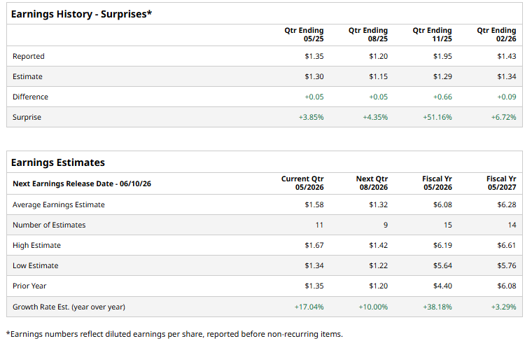 The software titan is scheduled to announce its fiscal 2026 Q4 earnings in the near future. Ahead of this event, analysts expect this software company to report a profit of $1.58 per share, up 17% from $1.35 per share in the year-ago quarter. The company has surpassed Wall Street’s bottom-line estimates in each of the last four quarters.