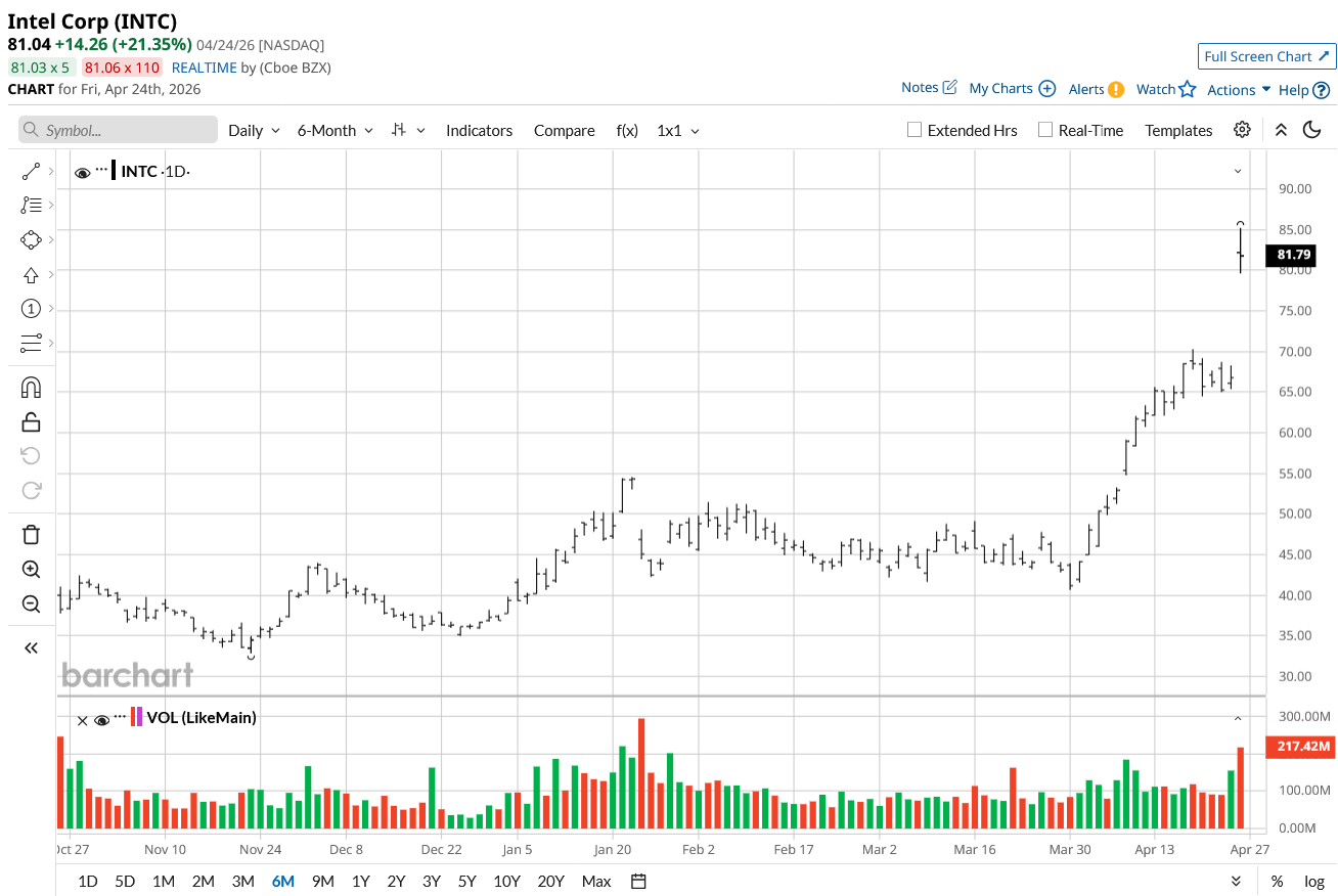 Intel recently reported Q1 FY26 earnings, which exceeded analyst estimates. Revenue came in at $13.6 billion, higher by 7.2% on a year-on-year (YoY) basis and $1.4 billion above the January 2026 outlook. Further, the earnings per share were 29 cents as compared to the analyst forecast EPS of 1 cent.