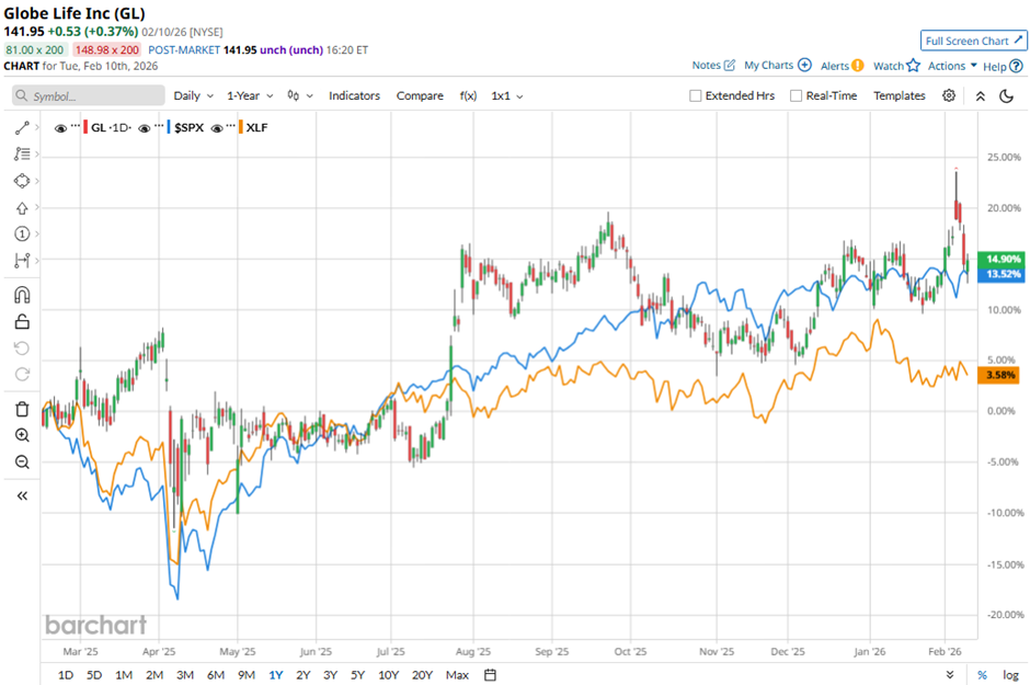 Despite reporting weaker-than-expected Q4 2025 adjusted EPS of $3.39 and revenue of $1.52 billion on Feb. 4, shares of GL rose 1.5% the next day as investors focused on strong year-over-year gains, with net operating income increasing to $3.39 per share and net income rising to $3.29 per share. Sentiment was further supported by solid full-year results, as 2025 net operating income climbed to $14.52 per share and net income increased to $14.07 per share, both up 8% and above the midpoint of prior guidance.