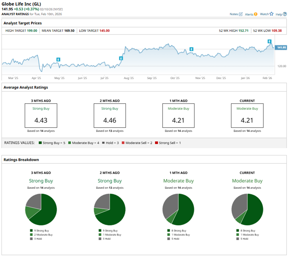 On Feb. 6, Jimmy Bhullar of J.P. Morgan reaffirmed a “Buy” rating on Globe Life and set a price target of $181.