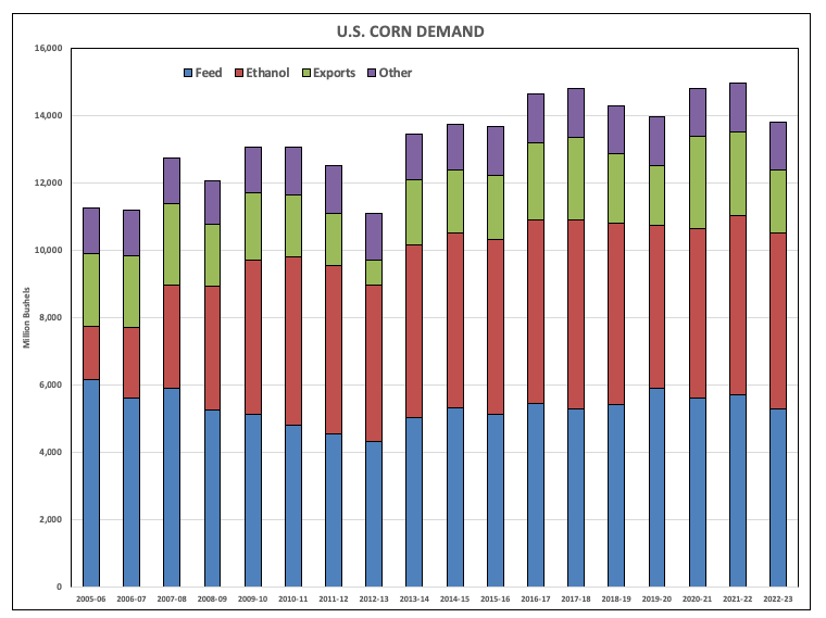 Renewable fuels also play a major role in the slow turn toward EVs across rural America, and rightfully so. For much of 2022 we heard of a number of soybean crushing plants beginning construction as demand for bean oil is expected to explode with the next wave of renewable diesel. Given this, if I were the head of Ford Motors, or any major automobile maker, I would be targeting that growing market sector. Additionally, USDA’s latest monthly supply and demand guesses pegged ethanol demand for US corn at 5.25 billion bushels. If realized this would be the fifth largest marketing year for ethanol demand on record. If I add my guess to the mix, I think ethanol demand for US corn will be stronger than 5.25 bb, if merchandisers can find the corn. Looking ahead to the 2023-2024 marketing year, the US is expected to increase its planted corn acres while weather is supposed to cooperate for the first time in about 4 years. The bottom line is the US should have more corn available for ethanol down the road.