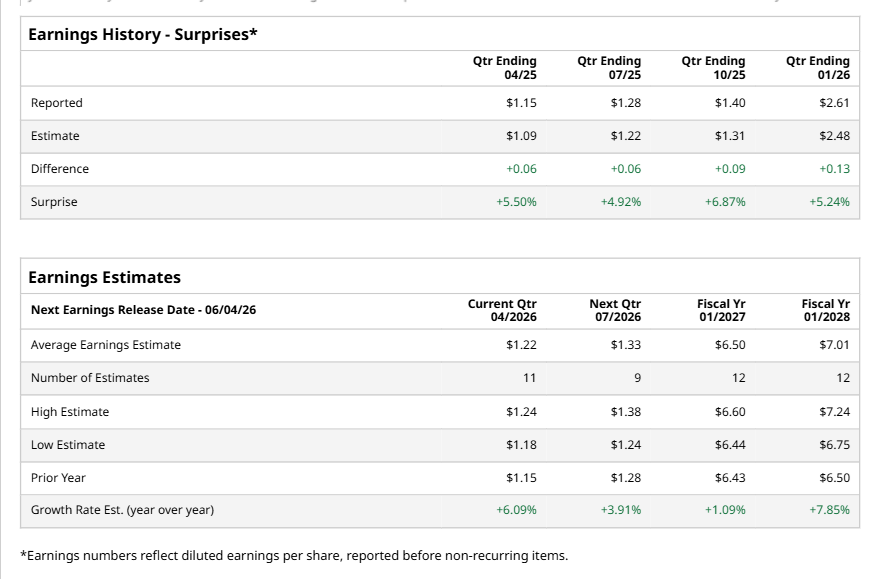 Best Buy Co., Inc. (BBY), headquartered in Richfield, Minnesota, retails consumer electronics, home office products, entertainment software, appliances, and related services through its retail stores, as well as its website. Valued at $12.6 billion by market cap, the company also retails pre-recorded home entertainment products through retail stores. The retail giant is expected to announce its fiscal first-quarter earnings for 2027 in the near term.