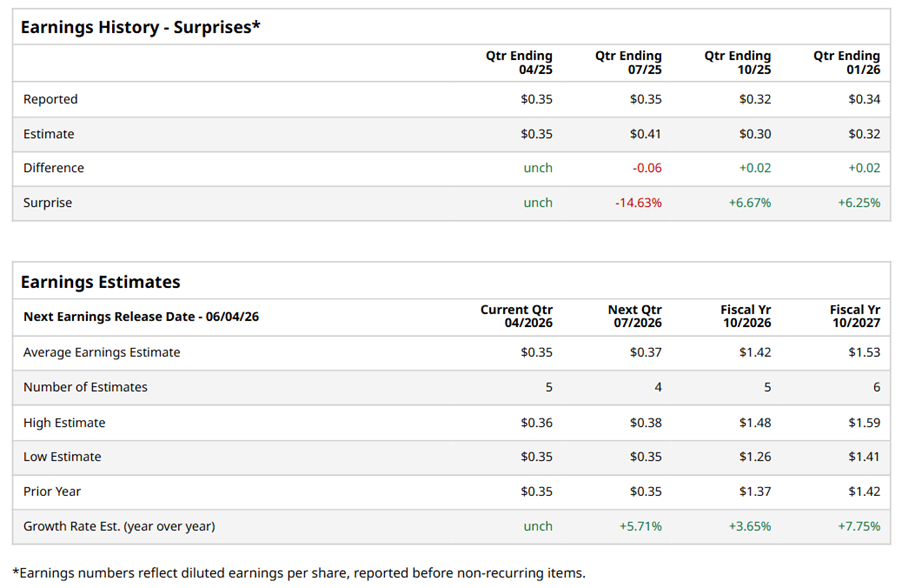 For the full year, analysts expect HRL to report EPS of $1.42, up 3.7% from $1.37 in fiscal 2025. Its EPS is expected to rise 7.8% year over year to $1.53 in fiscal 2027.