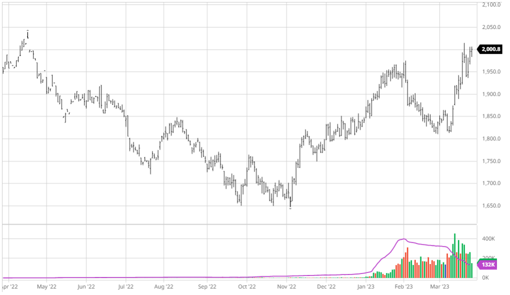 This week we have seen gold prices breach the $2,000/ounce mark for the first time in 12 months as investors are worried about the banking crisis surrounding the United States.