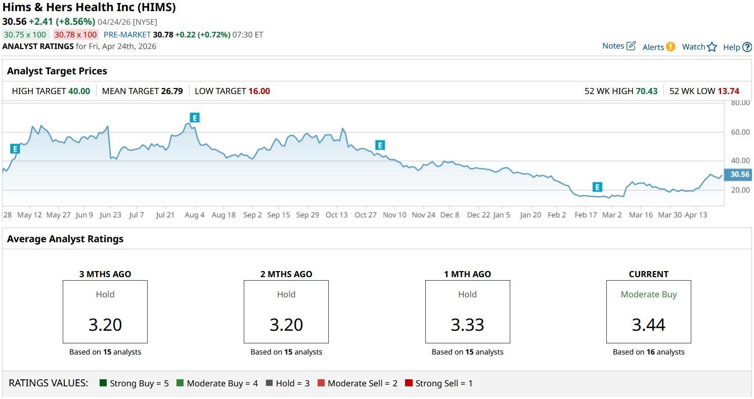 According to Barchart, the consensus rating on HIMS stock sits at a “Moderate Buy” currently, with price targets as high as $40, suggesting it’s not too late to invest in it yet.