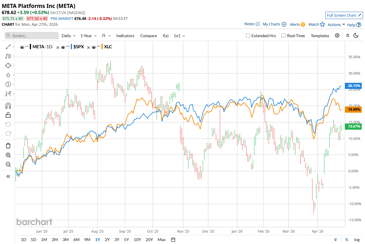 META shares have lagged behind the broader market over the past year, growing 24% compared to the S&P 500 Index ($SPX) 29.8% surge. Moreover, in 2026, the stock has climbed nearly 2.8%, lagging behind the SPX’s 4.8% rise as well.