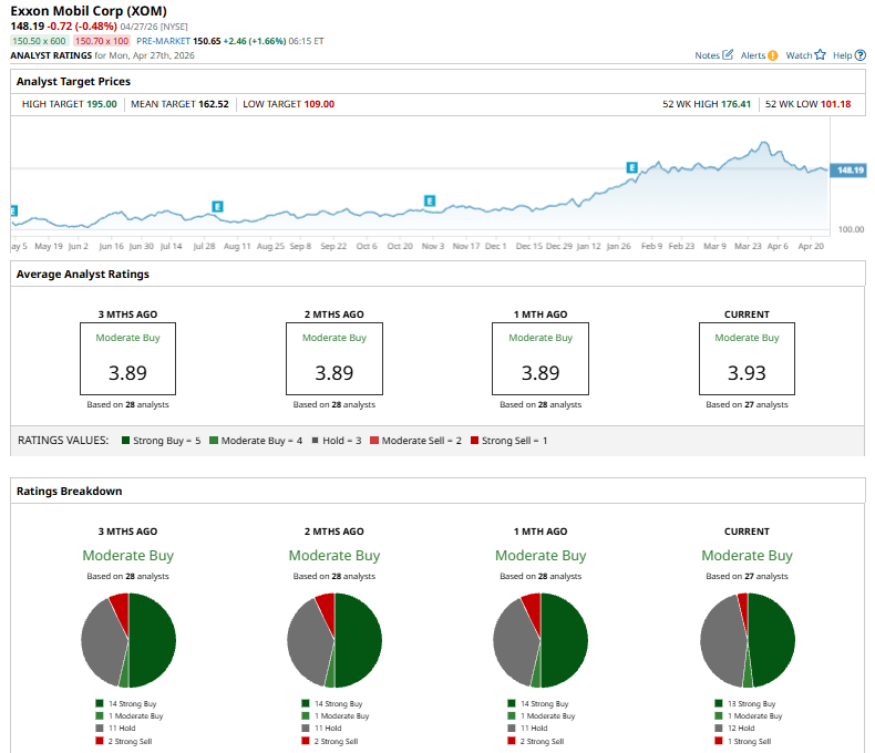 On Apr. 22, Exxon Mobil saw its price target raised by Scotiabank to $163 from $128, with the firm maintaining an “Outperform” rating. The revision comes as part of a broader update across U.S. energy stocks under coverage.