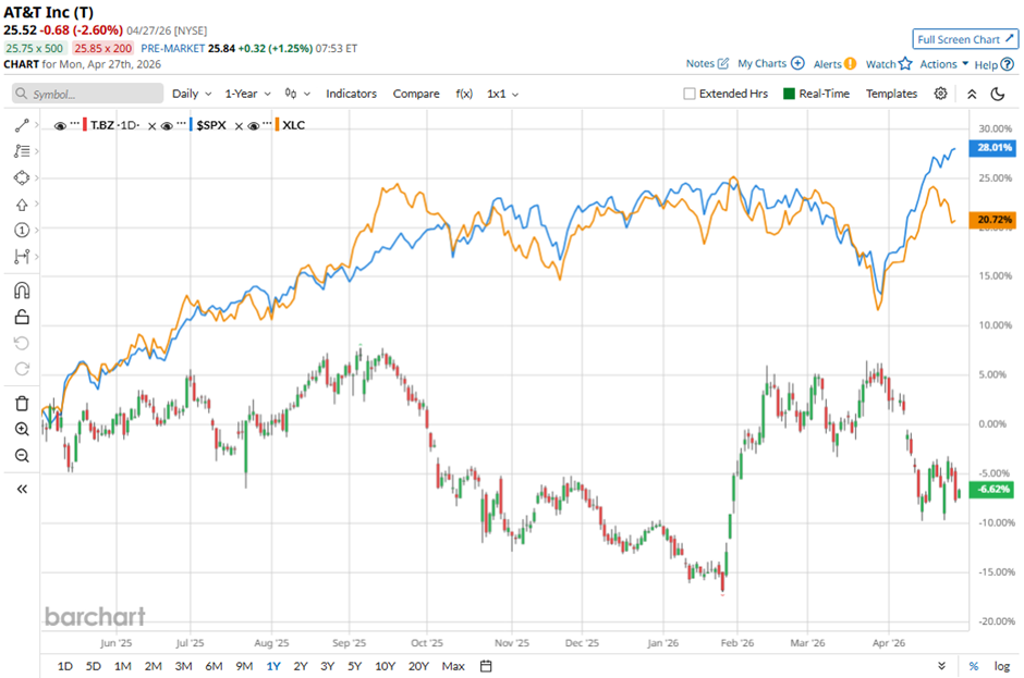 Moreover, the telecom giant's stock has lagged behind the State Street Communication Services Select Sector SPDR ETF’s (XLC) 22.7% surge over the past 52 weeks.