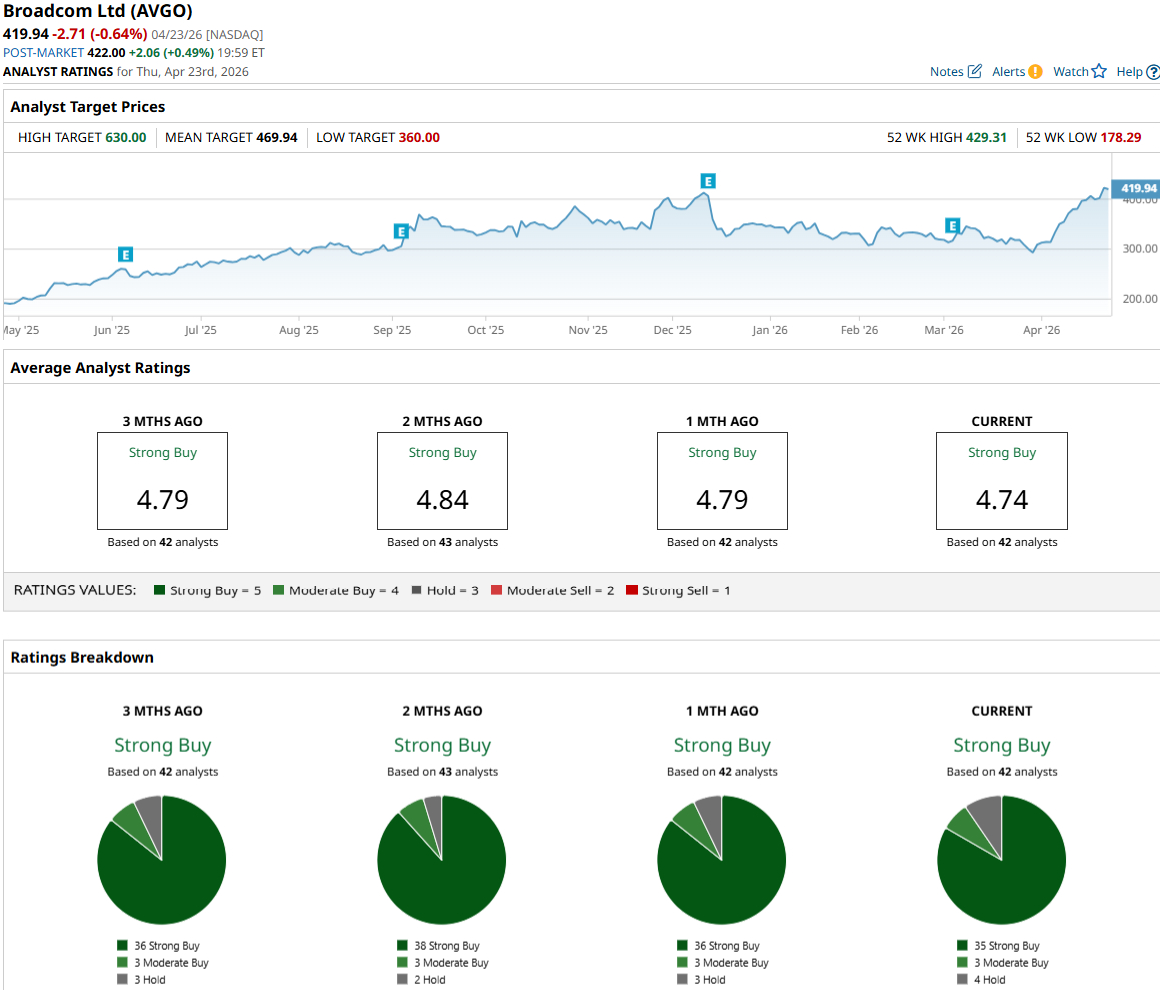 The wider group on the Street is mostly pulling in the same direction. The 42 analysts covering AVGO stock offer a consensus “Strong Buy" rating, even though some are more cautious than others. The average 12-month target is $469.94, which implies 12% potential upside from here.