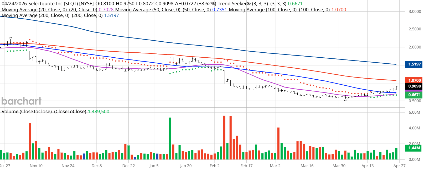 Barchart Technical Indicators for SelectQuote