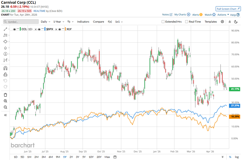 Shares of the cruise operator have outperformed the State Street Consumer Discretionary Select Sector SPDR ETF’s (XLY) 18.6% return over the past 52 weeks.
