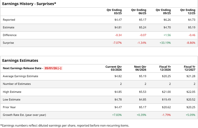 As Berkshire Hathaway approaches its next reporting date, analyst expectations point toward steady, albeit modest, growth for the quarter. The average earnings estimate is $4.82 per share, representing a 7.83% increase over the $4.47 reported in the same period last year. Forecasts remain tightly clustered between two analysts, with a high of $4.85 and a low of $4.78.