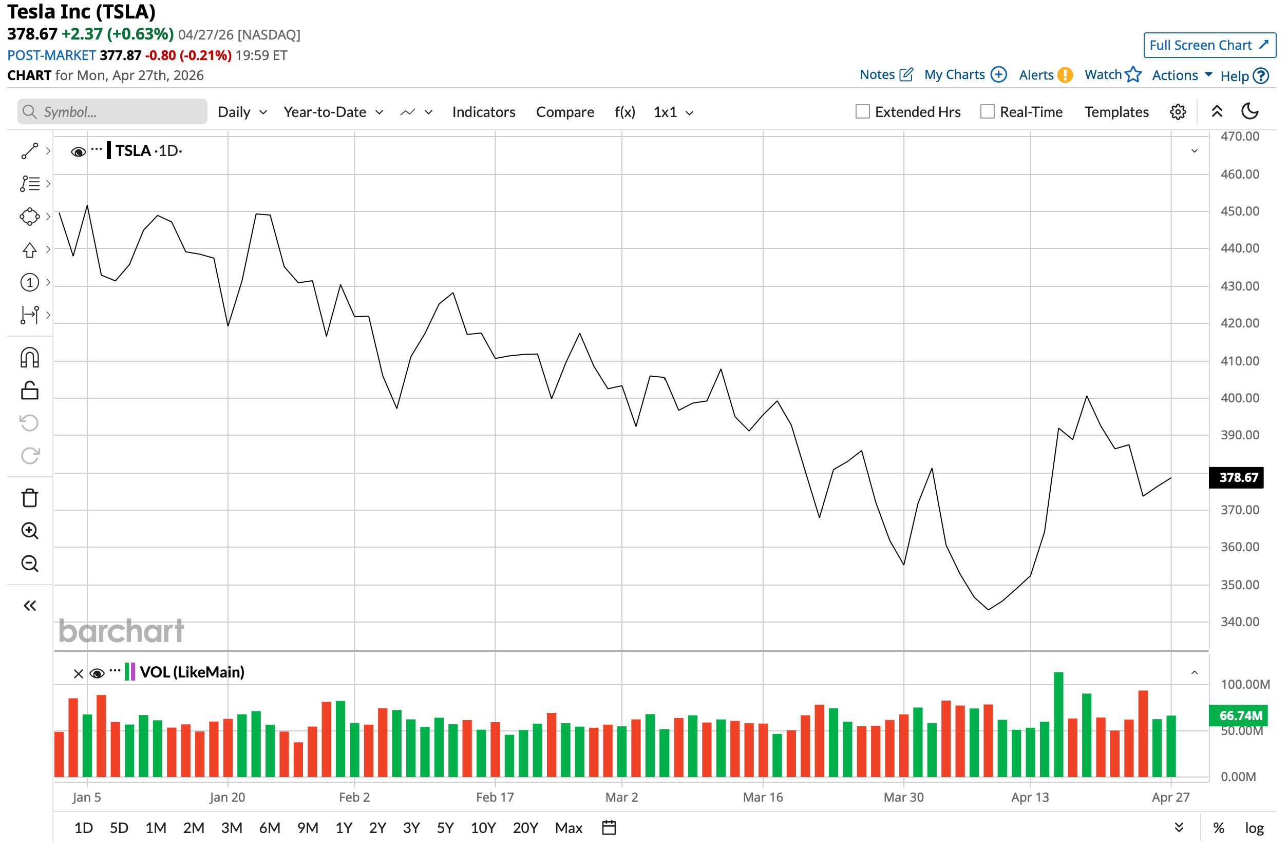 Yet, shares of the $1.5 trillion market cap company are still down 16% on a year-to-date (YTD) basis. So, can the start of production of Cybercabs lead to a reversal in the stock's fortunes? Let's find out.